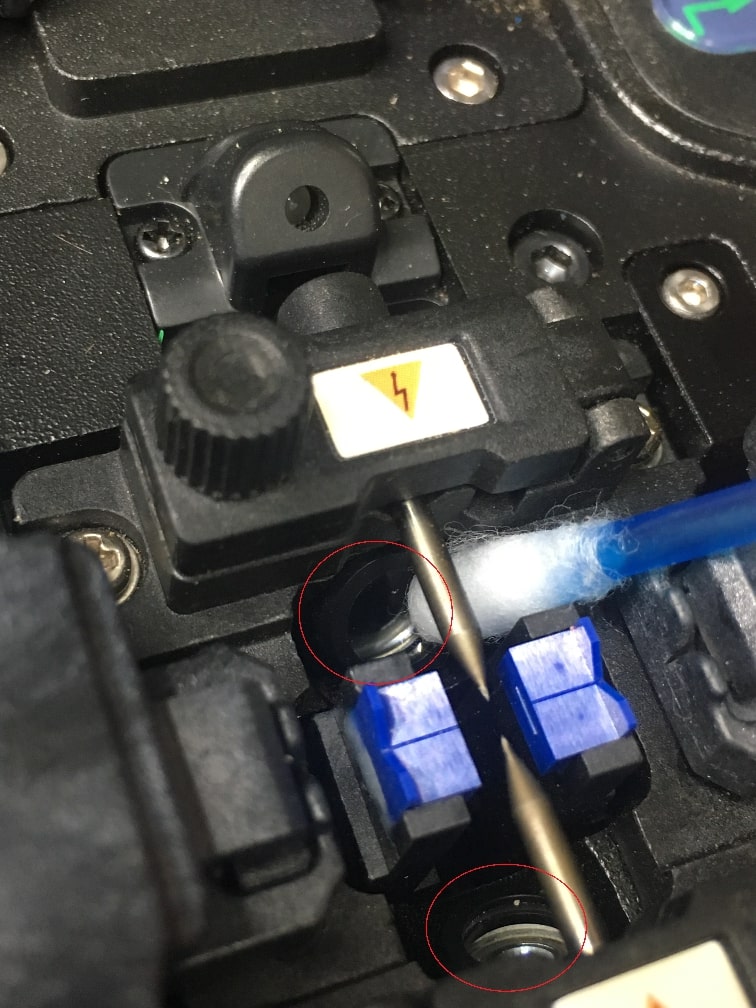 Posicionar as fibras da forma correta, para que as mesmas não encostem nas paredes da máquina é outro fator muito importante para que a fibra não seja prejudicada. É importante também que a fibra fique próxima ao eletrodo porém sem tocá-los também, a sua máquina de fusão se encarregará de fazer a aproximação necessária para realizar a fusão.