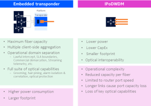 Existem dois modelos de implantação de motores ópticos coerentes: Seja como módulos embarcados em placas de transponders em plataformas de transporte óptico, ou como pluggables coerentes que podem ser hospedados em plataformas IP/Ethernet como switches e roteadores.
