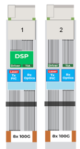 Uma das inovações mais promissoras na arquitetura de interconexão óptica de alto desempenho é a iniciativa LPO-MSA (Linear Pluggable Optics – Multi-Source Agreement). Essa proposta tem como objetivo transformar a forma como os transceptores ópticos são projetados e integrados em ambientes de alta densidade, como data centers e redes de backbone, ao eliminar etapas de processamento digital de sinais (Digital Signal Processor – DSP) nos módulos ópticos, transferindo parte da responsabilidade de equalização e compensação para os próprios componentes ópticos passivos (Fig. 2).