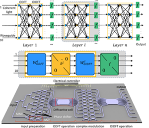 Entre os principais avanços está a utilização de redes neurais ópticas, construídas com guias de onda, moduladores interferométricos, filtros ópticos e matrizes de difração, que podem realizar operações matemáticas (como multiplicações matriciais) em alta velocidade. Esses sistemas são capazes de aprender padrões complexos, como variações de tráfego, detecção de falhas ou eventos físicos e responder de forma autônoma, mesmo em ambientes distribuídos. Aplicações emergentes incluem: